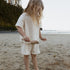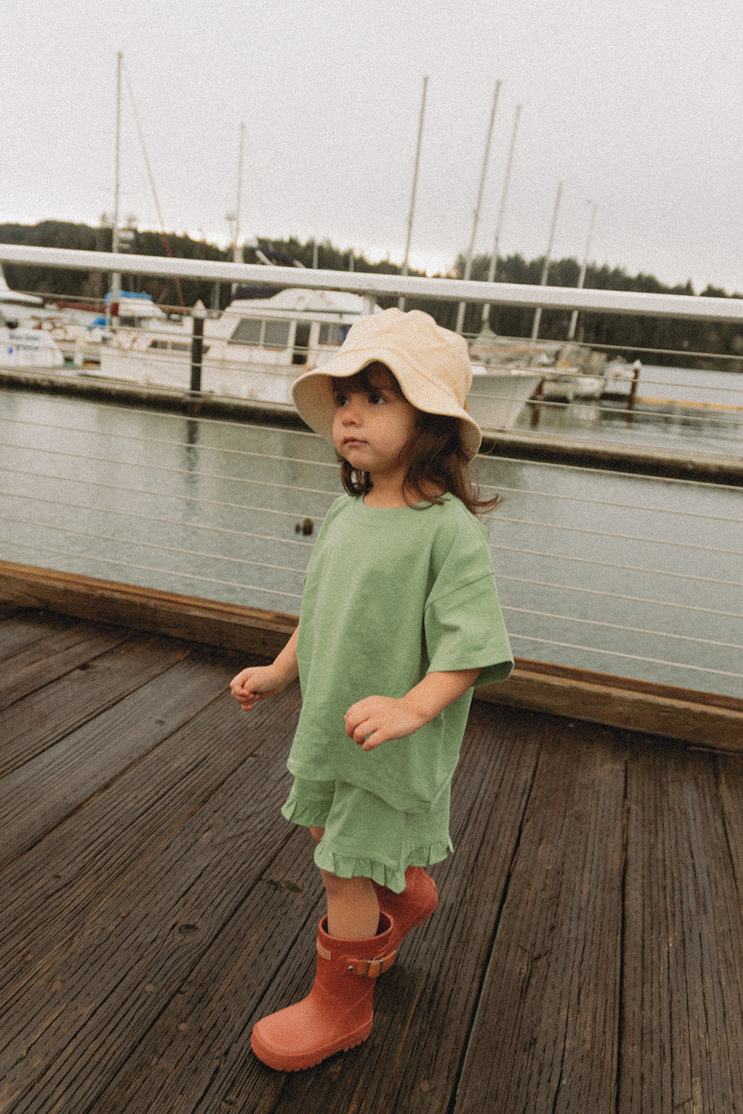 Meet the Ellery Set—a thoughtfully designed two-piece for your little girl that combines comfort with charm. Crafted from soft jersey cotton, this set features a relaxed-fit shirt paired with adorable ruffle shorts that let her move freely and play confidently. The loose silhouette grows with your baby or toddler, making it a practical choice for spring and summer months. It's the kind of outfit that feels as good as it looks—cute, cozy, and ready for whatever the day brings.