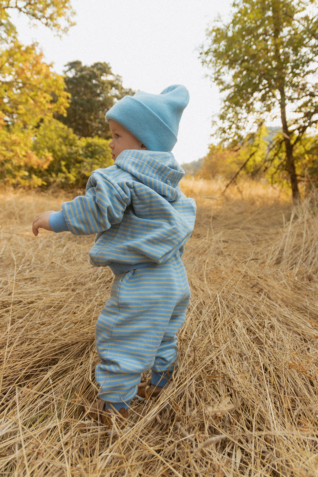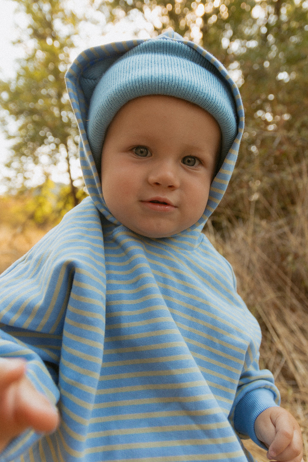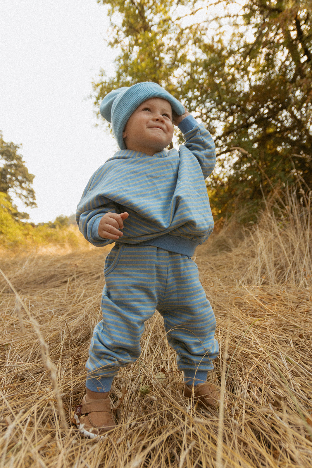 Dress your baby and toddler in the Jamie Set in Thin Bel Air Blue Stripe for cozy, playful days! Made from soft brushed-back French terry fabric, this oversized hooded sweatshirt and drawstring pants combo keeps little ones comfy and free to move. Perfect for naps, playtime, or family adventures!