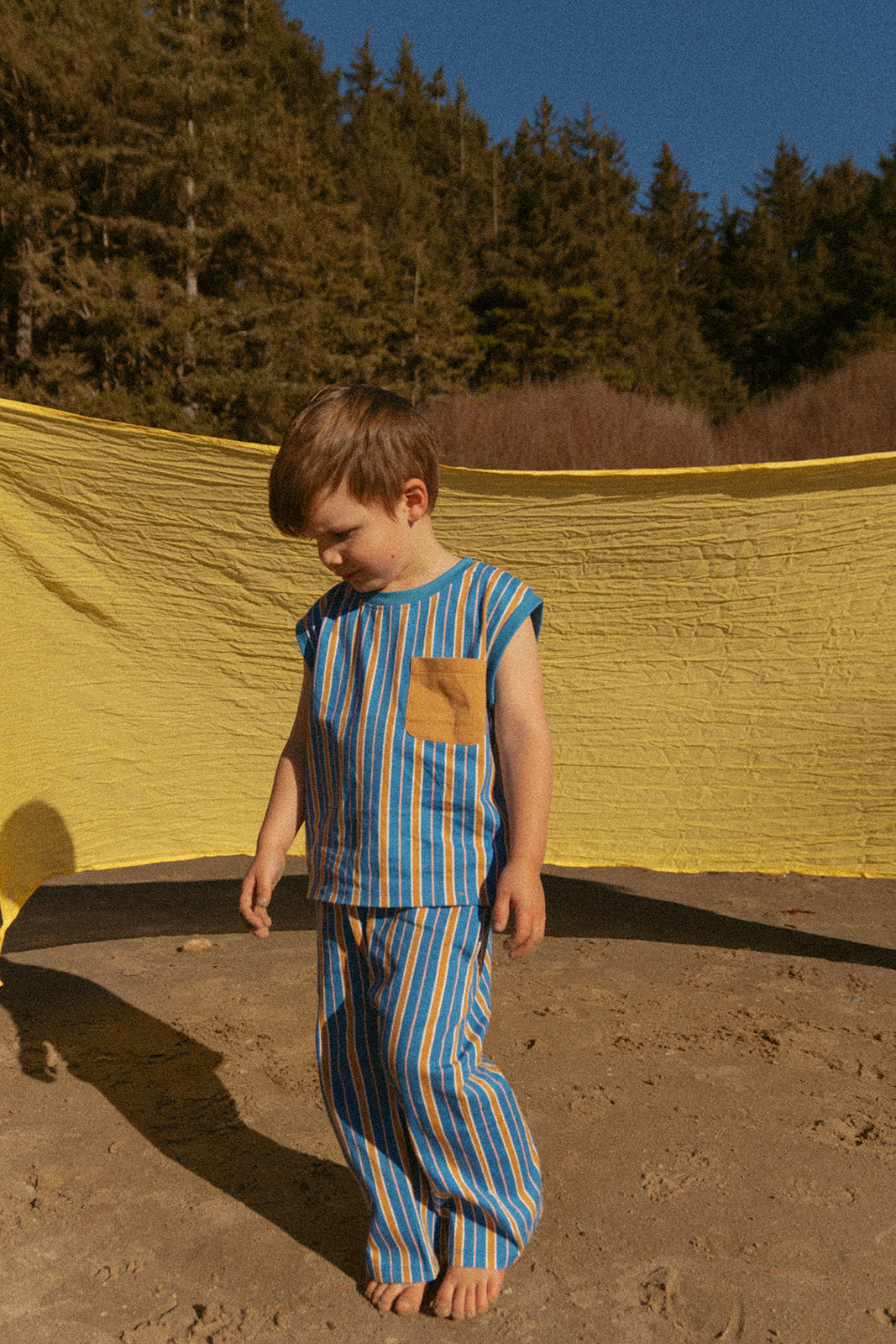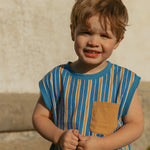 Your little one deserves comfort that keeps up with their energy. The Jensen Set combines a sleeveless shirt and coordinating pants in 100% pure cotton—soft, breathable, and built for all-day play. The cheerful striped pattern brings joy to any outfit, while the oversized silhouette gives growing babies and toddlers plenty of room to move and explore. Perfect for both boys and girls, this versatile set is your spring and summer essential for worry-free, colorful playtime.