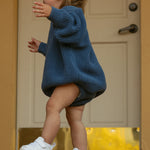 The Jesse Set in Bijou Blue offers a cozy and stylish two-piece look with an oversized chunky knit sweater and comfortable bloomer bottoms. Designed to keep your little ones warm and cozy!
