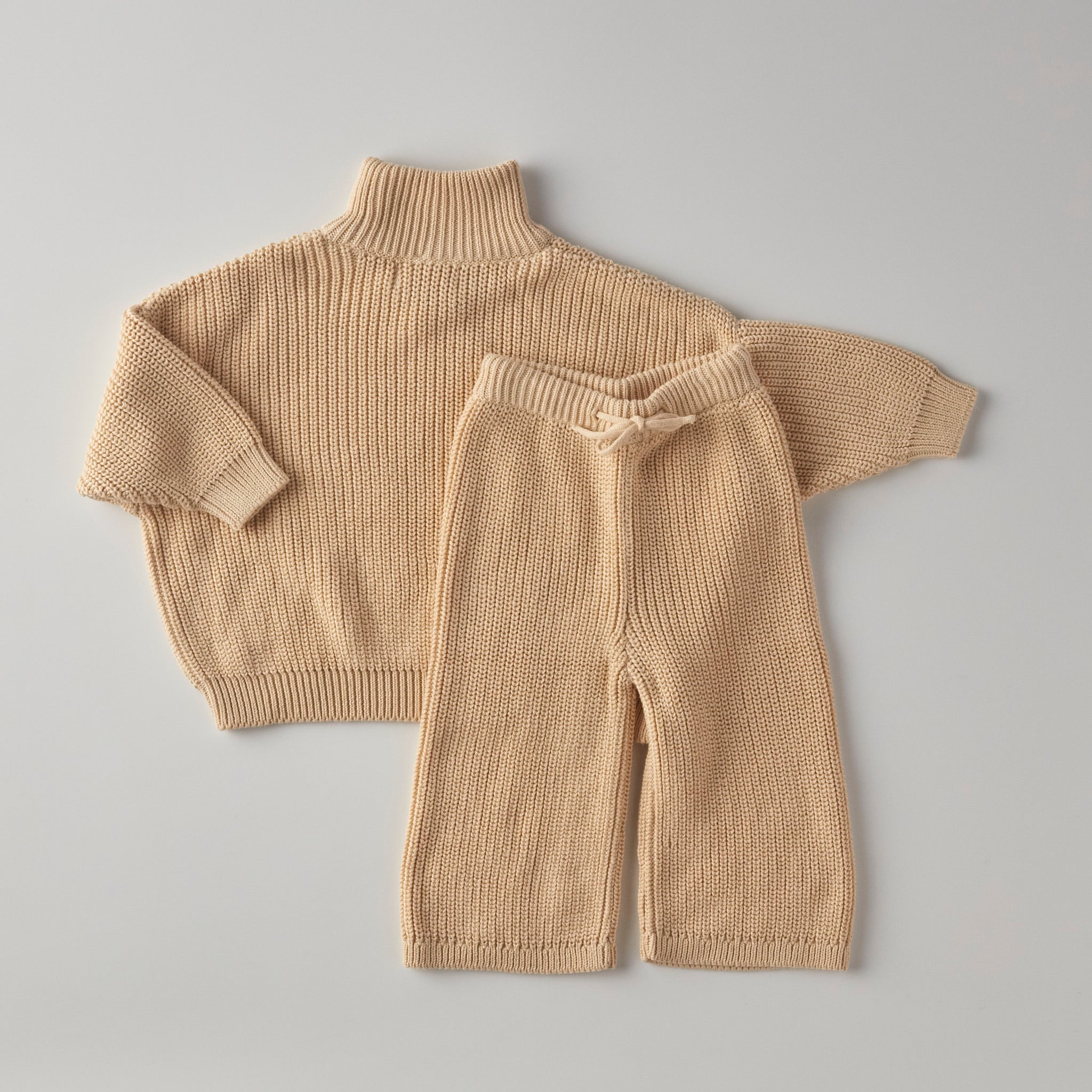 Cozy up in the Morgan Set in Vanilla, featuring a playful oversized mock neck sweater paired with wide-leg pants. This knit two-piece offers effortless comfort and style, perfect for lounging or playing!