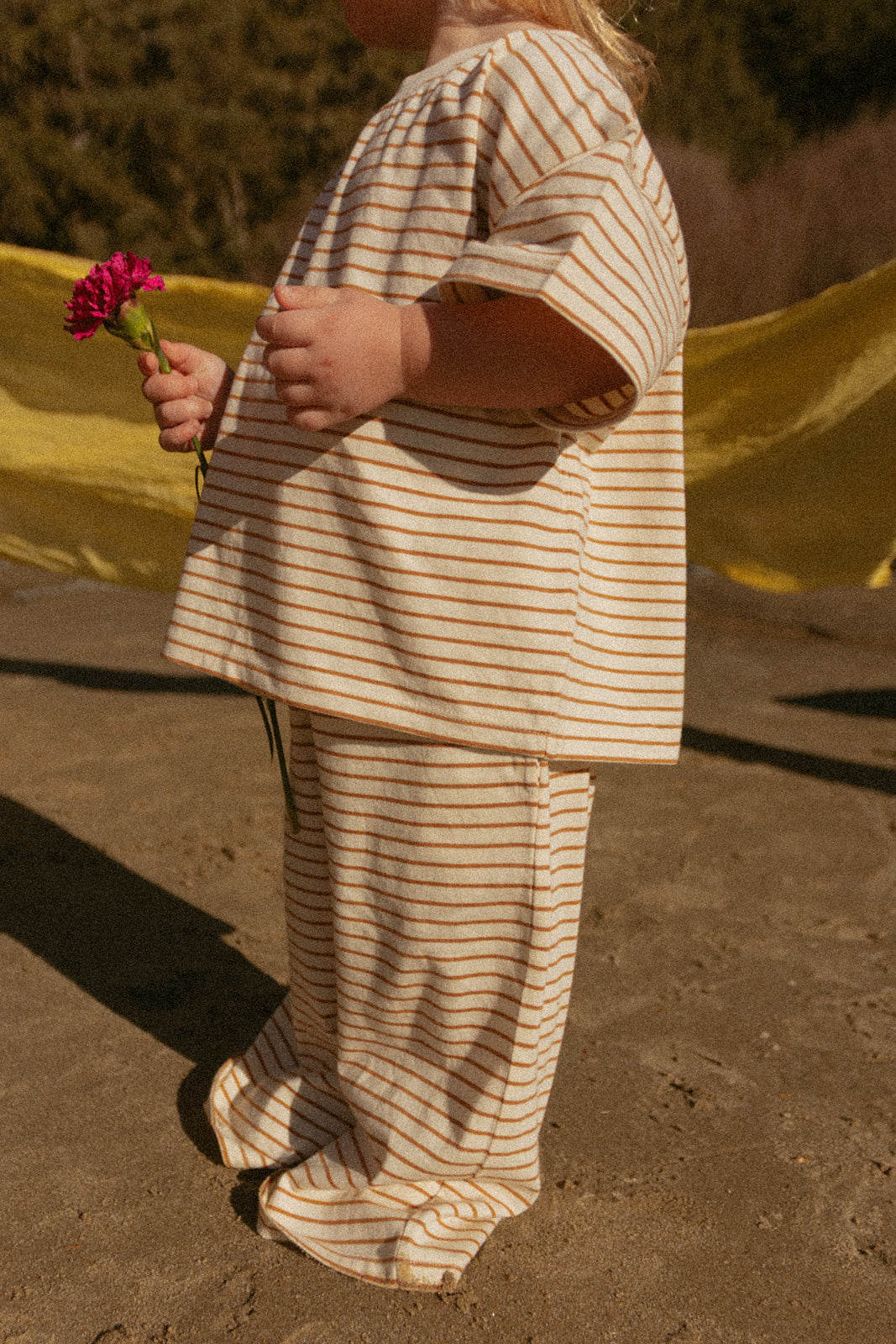 Give your little one the comfort they deserve with the Sawyer Set—a thoughtfully designed two-piece featuring a relaxed boxy shirt and flowing wide-leg pants. Crafted from 100% organic jersey cotton, this lightweight set supports active play while keeping skin happy and healthy. Whether you're dressing a baby or toddler, boy or girl, this versatile set transitions seamlessly from spring through summer and beyond, making it a reliable choice for every season.