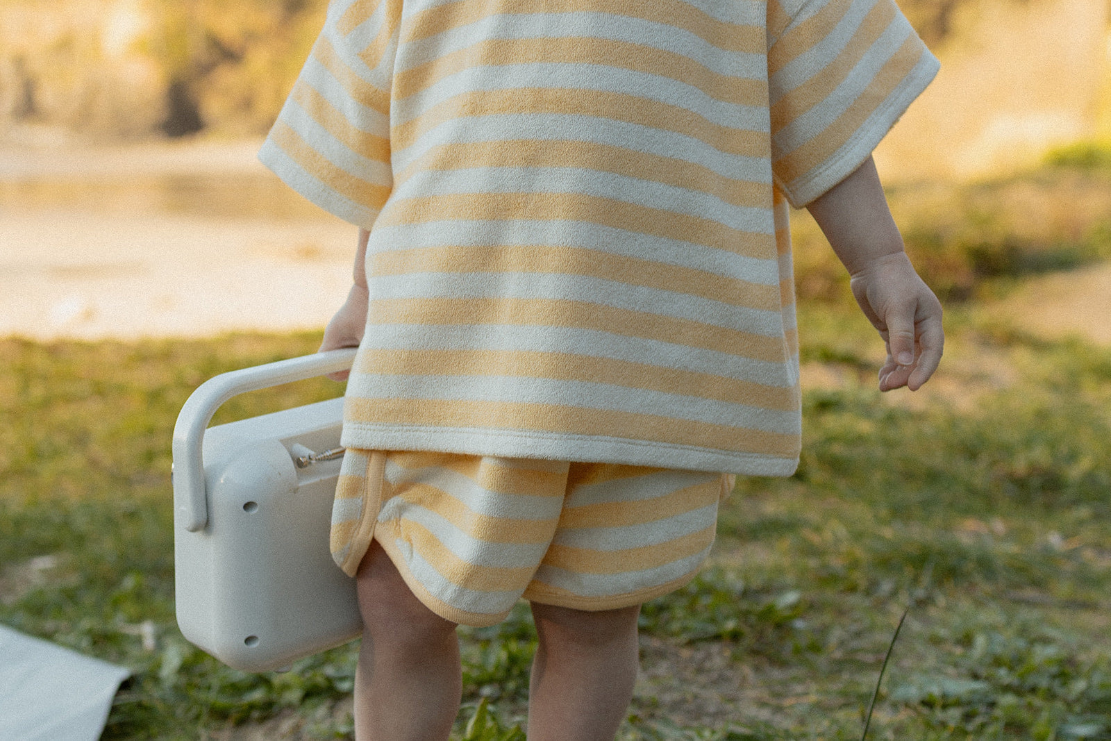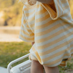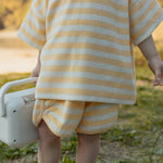 The Sterling Set brings effortless style to playtime and beyond. This two-piece terry cloth outfit features a soft, striped shirt paired with comfortable shorts—perfect for babies and toddlers who love to move. The retro-inspired design and cheerful apple cinnamon palette make it ideal for spring and summer adventures, whether heading to preschool, traveling, or enjoying outdoor fun. Durable terry cloth keeps little ones cozy while the playful stripes add personality to any day.