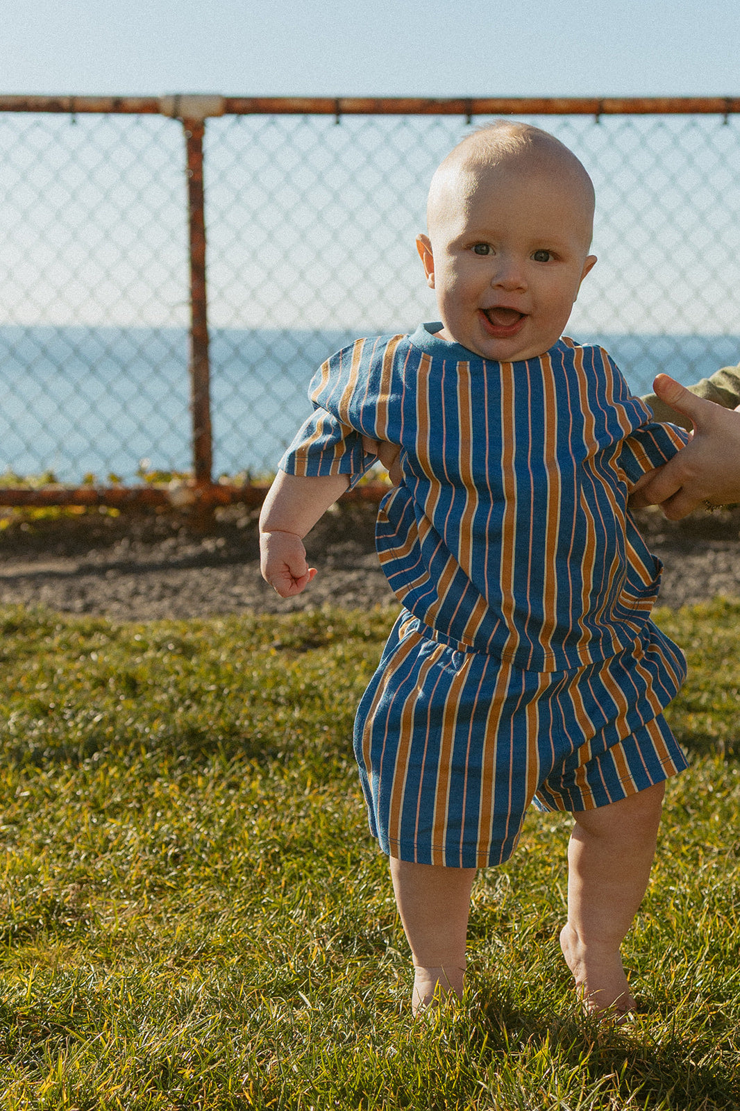 Brighten your little one's wardrobe with the Toby Set. This cheerful two-piece features a vibrant striped pattern in warm, inviting tones that's perfect for playtime, preschool, and everything in between. Crafted from 100% cotton, the oversized cut ensures comfort and room to grow, making it ideal for active babies and toddlers during spring and summer months. Whether they're exploring the playground or enjoying quiet time at home, this set keeps them cool, comfortable, and ready for fun.